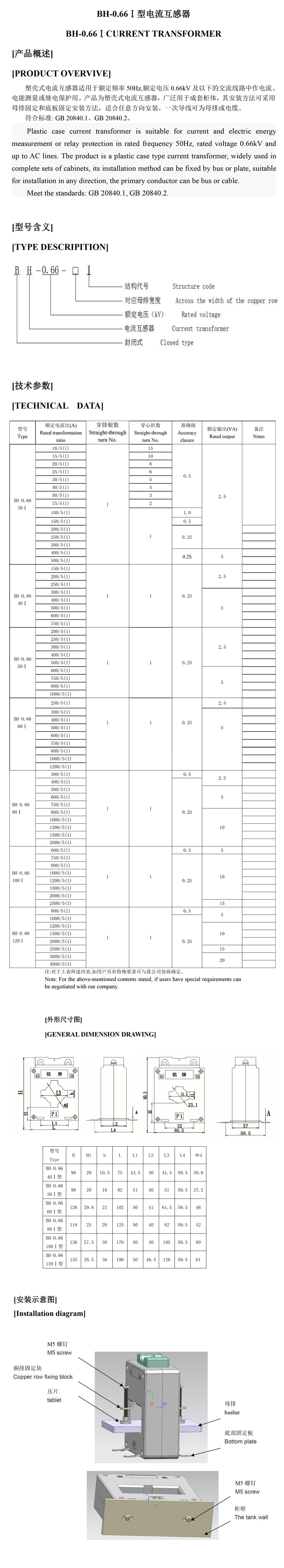 BH-0.66Ⅰ型電流互感器
