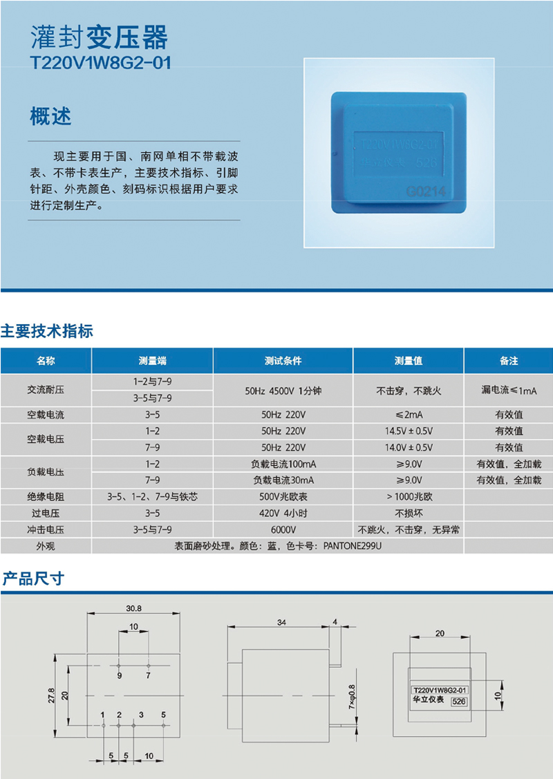 灌封變壓器 T220V1W8G2-01 - 重慶華虹儀表有限公司 - 華虹儀表